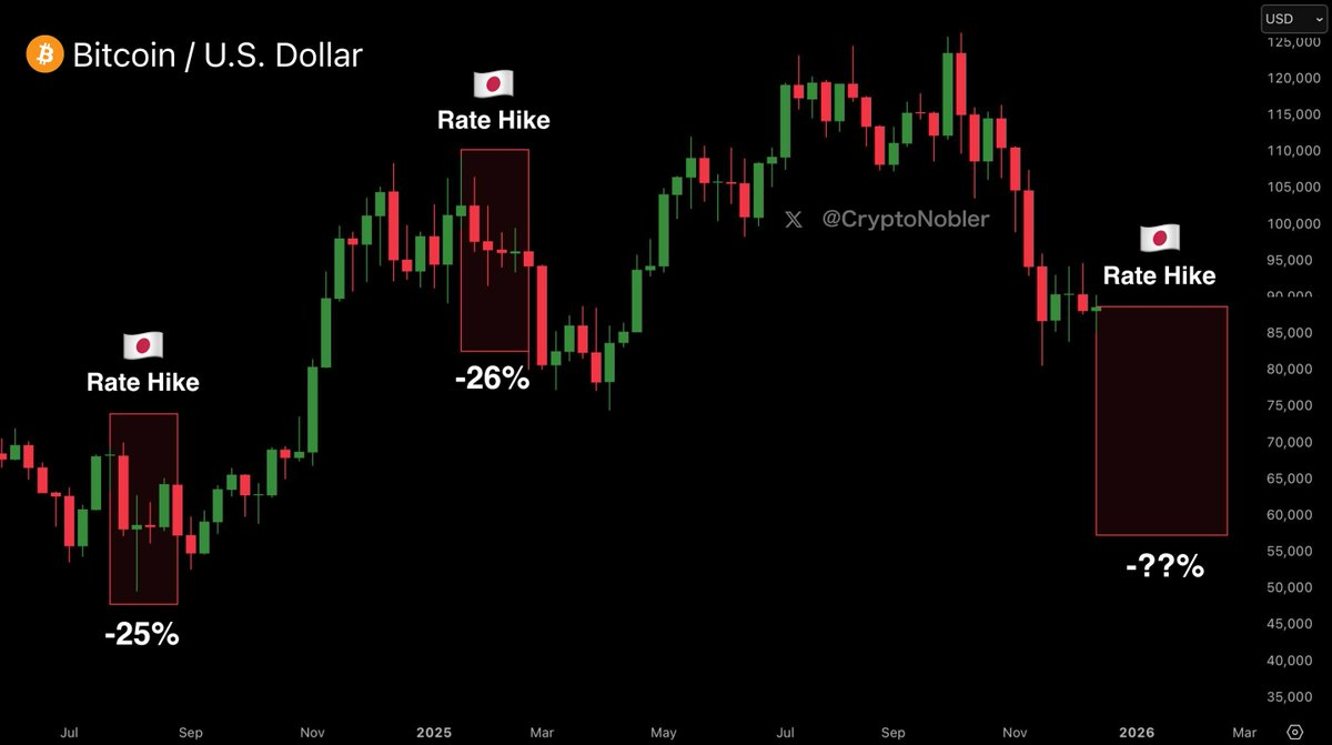 Bitcoin/USDT BOJ Hike Rate Reaction | Source: X