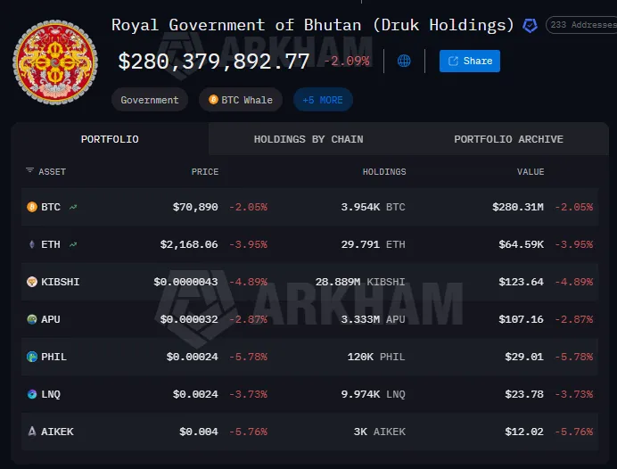 Bhutan’s bitcoin assets are managed by Druk Holding and Investments Ltd., the country’s sovereign wealth fund.