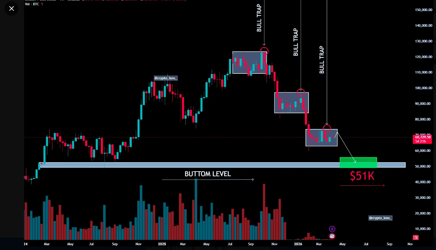 Further decline below this level might prolong the downside pressure and a rebound above $69,000 to $69,500 might indicate a short-term stabilization.Participants in the market are also very apprehensive because the price structure is still revealing of poor purchasing power and continued selling dominance.