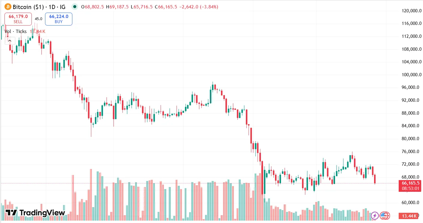 Bitcoin fell ahead of the open of the Wall Street and dropped below the level of $66,500 as the downward pressure continued to grow. According to market statistics provided by TradingView, Bitcoin remained moving towards range lows, and traders were paying attention to the areas of significant support.