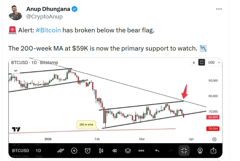 - The 200-week moving average near $59,000 remains a decisive level for future market direction.