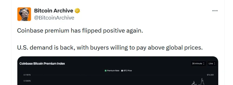 Coinbase premium reflects renewed institutional market confidence