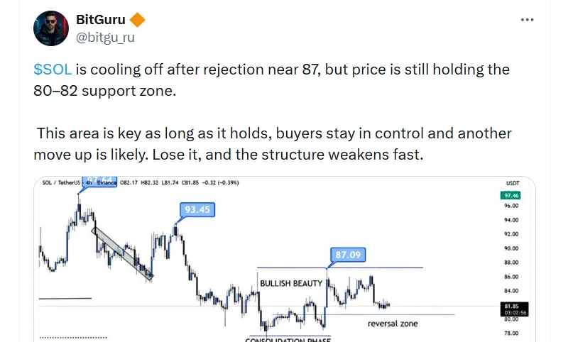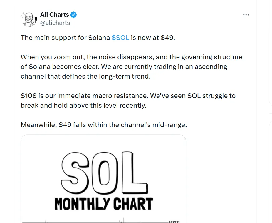 Solana remains in a wider rising channel, which outlines its trend direction in the long term. According to analysts, the $108 mark is still a major level of resistance which past rallies have not been able to maintain. Such a level is now considered a crucial objective in case of bullish continuation in the next few sessions.
