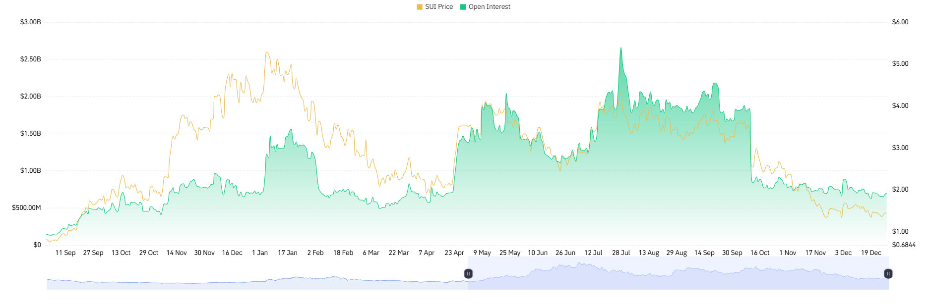 Open interest is still very elevated at $718.25 million, indicating that traders are actively taking positions on SUI, and the active speculative interest in SUI continues to grow.