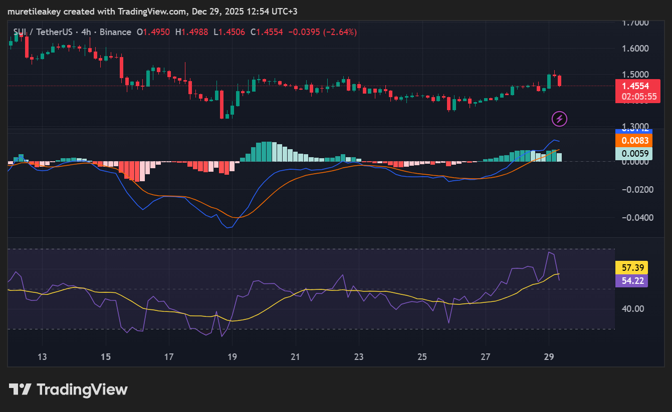 - SUI price has broken through the key $1.47 support level and could potentially continue toward the $1.50 resistance level.