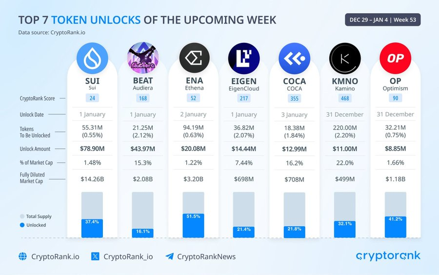 The SUI token has been experiencing an uptick in its price since a large amount of 55.31 million of its tokens will be released into circulation as of January 1st, which equals approximately 0.55% of the Total Supply.